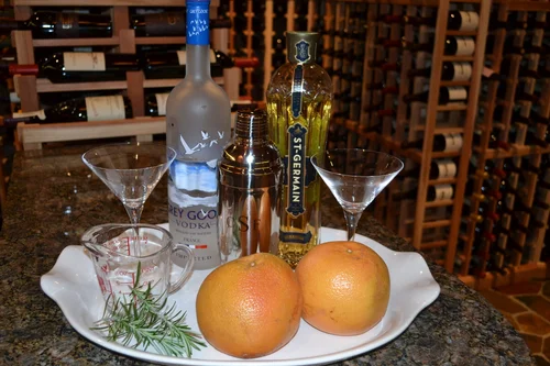 1 Handful of Ice. Refreshing light and so flavorful it may become your favorite. Germain grapefruit juice and fresh basil.
